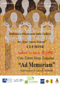 Venerdì 24 Aprile ore 18:00 Cine-Teatro Mons.Tomasini – CLUSONE Serata “Ad Memoriam” gruppo corale Vokal-Total – Dir. Donato Giupponi <… Leggi tutto